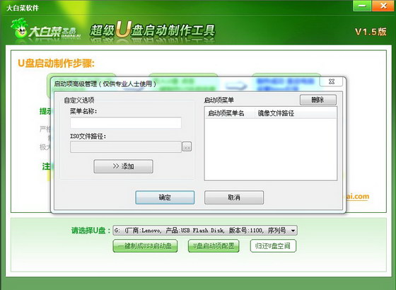軟件版本: 大白菜超級U盤啟動盤制作工具V1.5