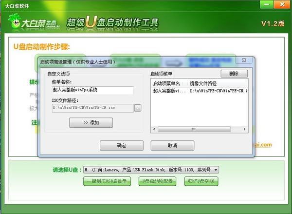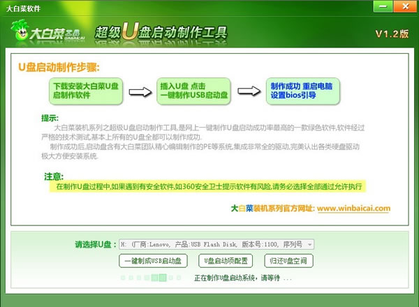 軟件版本: 大白菜超級U盤啟動盤制作工具V1.2