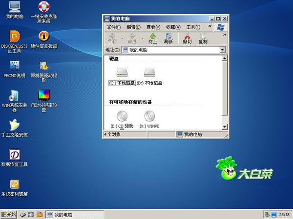 這就是大白菜的PE系統了。開始里的工具好多,就不再給圖列出了。