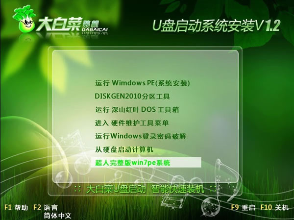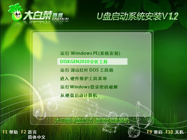 現在U盤繼續接上電腦,重啟電腦看看大白菜的啟動效果吧