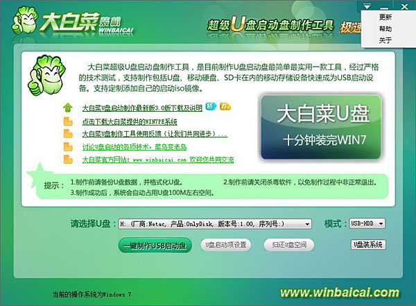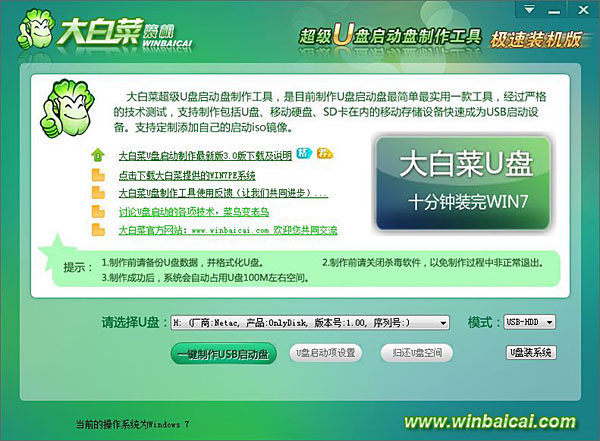 軟件版本: 大白菜超級U盤啟動制作工具快速裝機版