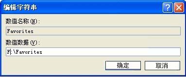 其次在該控制臺窗口的左側位置處,用鼠標右鍵點選HKEY_CURRENT_USER節點選項,并從目標節點下面依次展開注冊表子項Software\Microsoft\Windows\CurrentVersion\Explorer\Shell Folders,在對應Shell Folders子項的右側顯示區域中,找到目標鍵值Favorites,并用鼠標雙擊該鍵值選項,打開如圖1所示的設置對話框;在該對話框的"數值數據"文本框中,輸入U盤中的收藏夾詳細路徑,再單擊"確定"按鈕保存好上述設置操作,最后重新啟動一下對應系統,如此一來Windows系統日后就能自動將U盤作為收藏夾來顯示了。