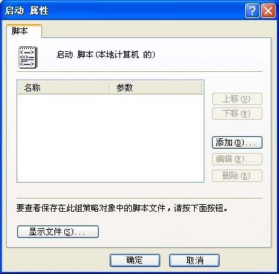 其次在該控制臺窗口的左側顯示位置處,依次選中"計算機配置"/"Windows設置"/"腳本"分支選項,在對應"腳本"分支選項的右側顯示區域,用鼠標雙擊"啟動"選項,打開如圖2所示的設置對話框。
