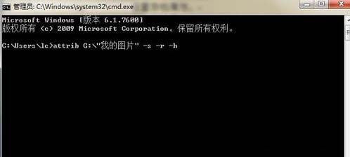 輸入命令:attrib G:\"我的圖片" -s -h -r