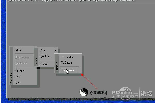 選擇[local]-[partition]-[from image](意思是從GHO鏡像文件中復制文件到系統(tǒng))。