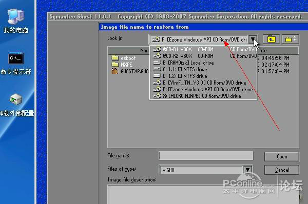 選擇GHO文件存放的分區(qū)或者光驅或者移動設備。然后選擇GHO文件。