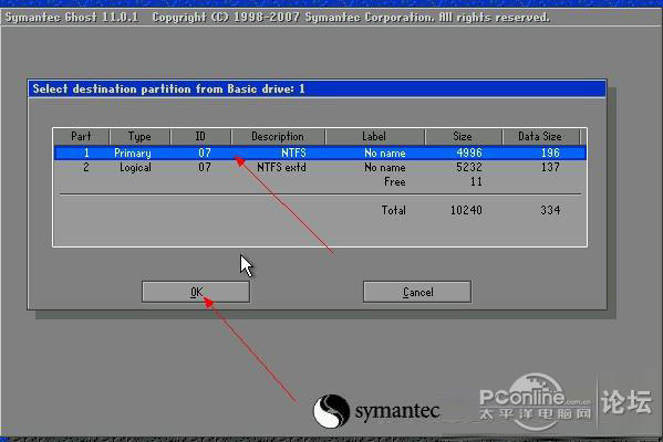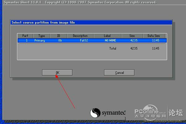這里的意思是:從鏡像文件選擇源分區(qū)。點擊[OK]進入下一步